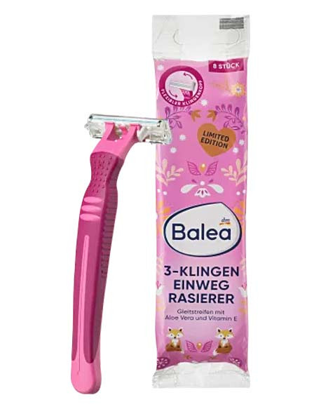 ژیلت سه تیغه زنانه باله آ دارای دسته ضد لغزش می باشد. همچنین نوار آن برای اصلاح راحت تر حاوی آلوورا و ویتامین E است.