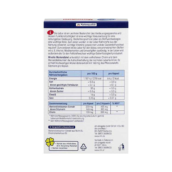 روزانه یک الی دو عدد کپسول خار مریم میولیس همراه با آب کافی میل شود.